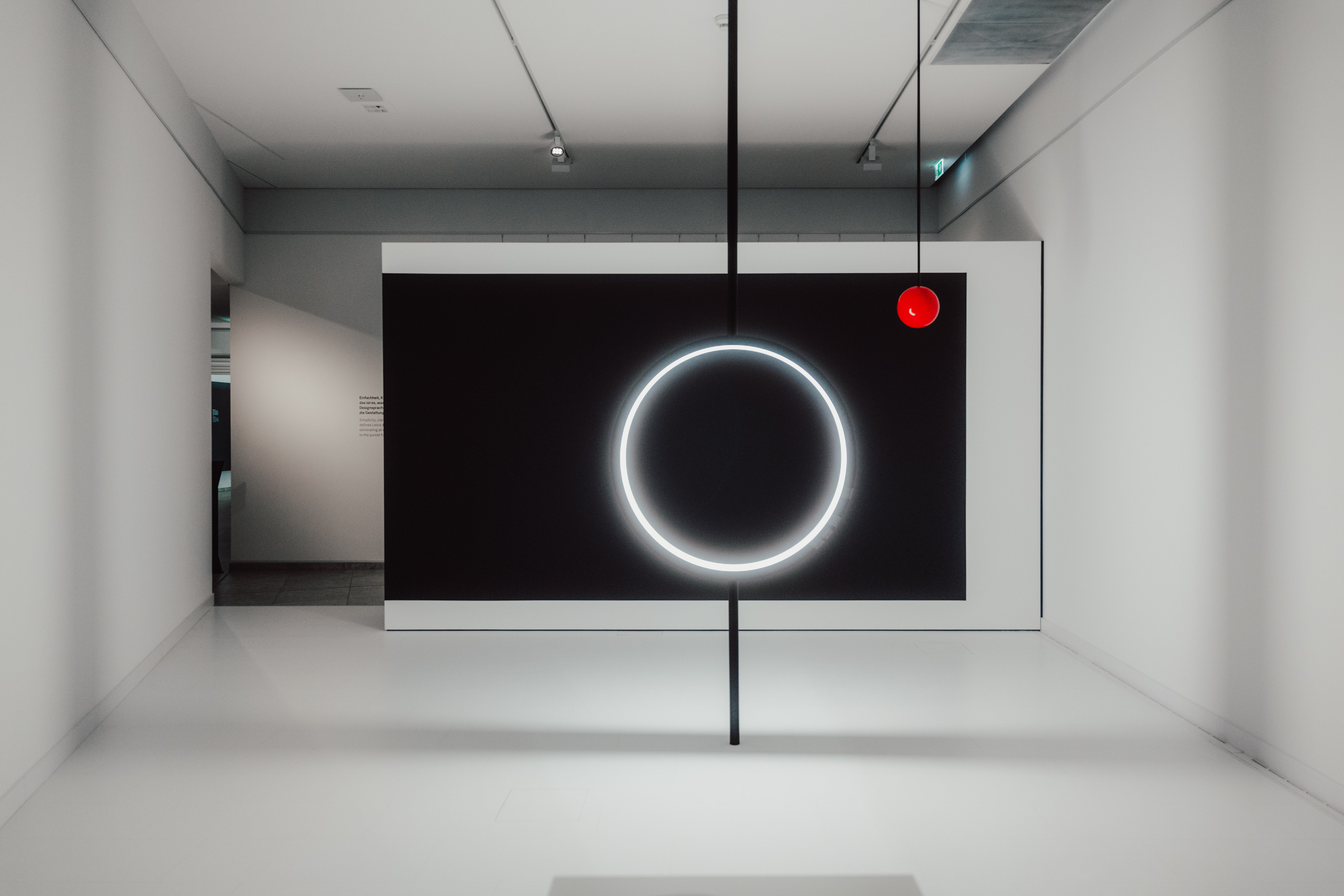 One of the highlights of the exhibition is the light installation that perfectly complements the minimalist atmosphere. Only from a specific perspective does a stylised Leica become visible, serving as the centrepiece of the exhibition. This anamorphic art form adds an extra dimension to the exhibition and invites visitors to view the world of Leica Design from various angles.